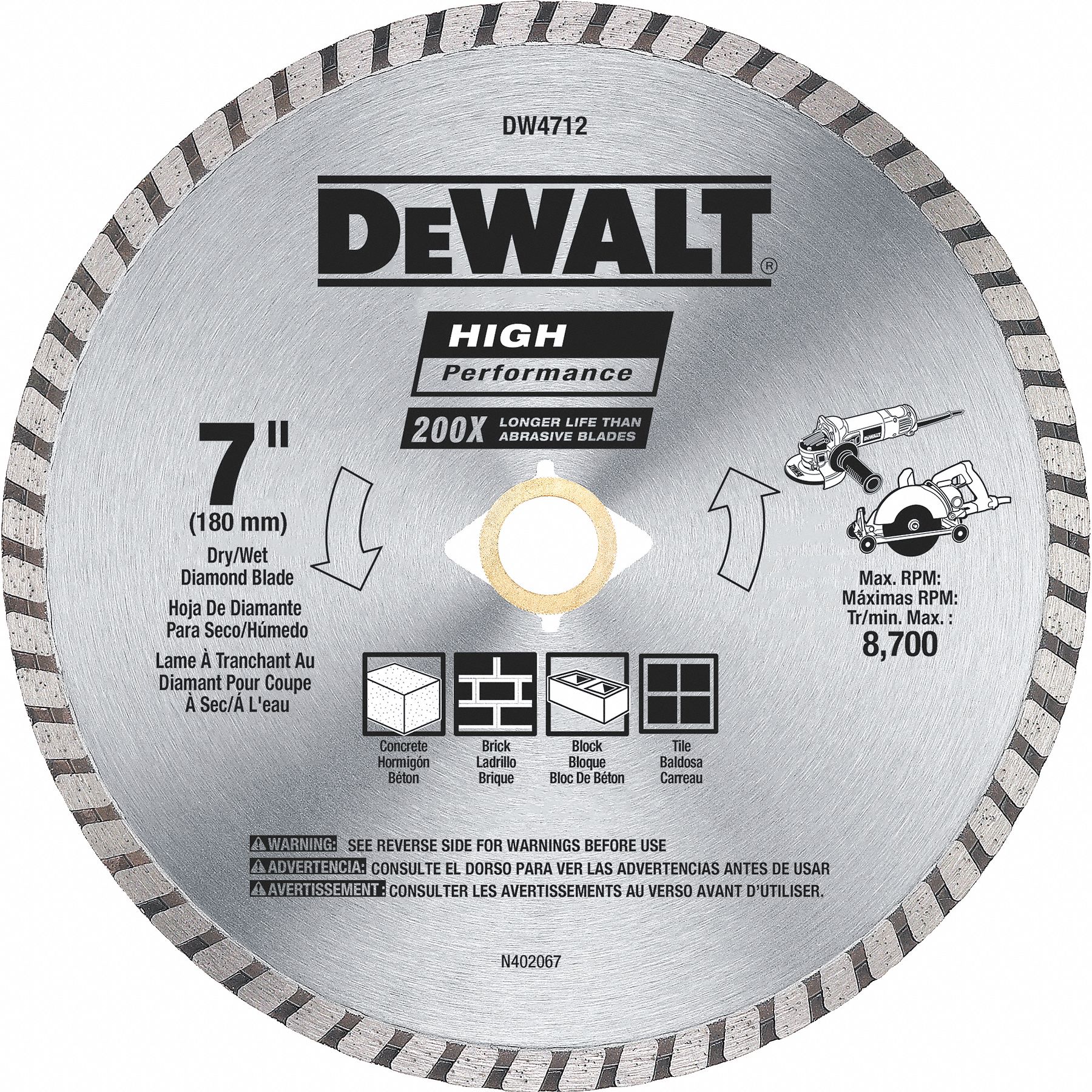 DEWALT Angle Grinders, Diamond Saw Blade, Masonry Materials Cut, 7 in